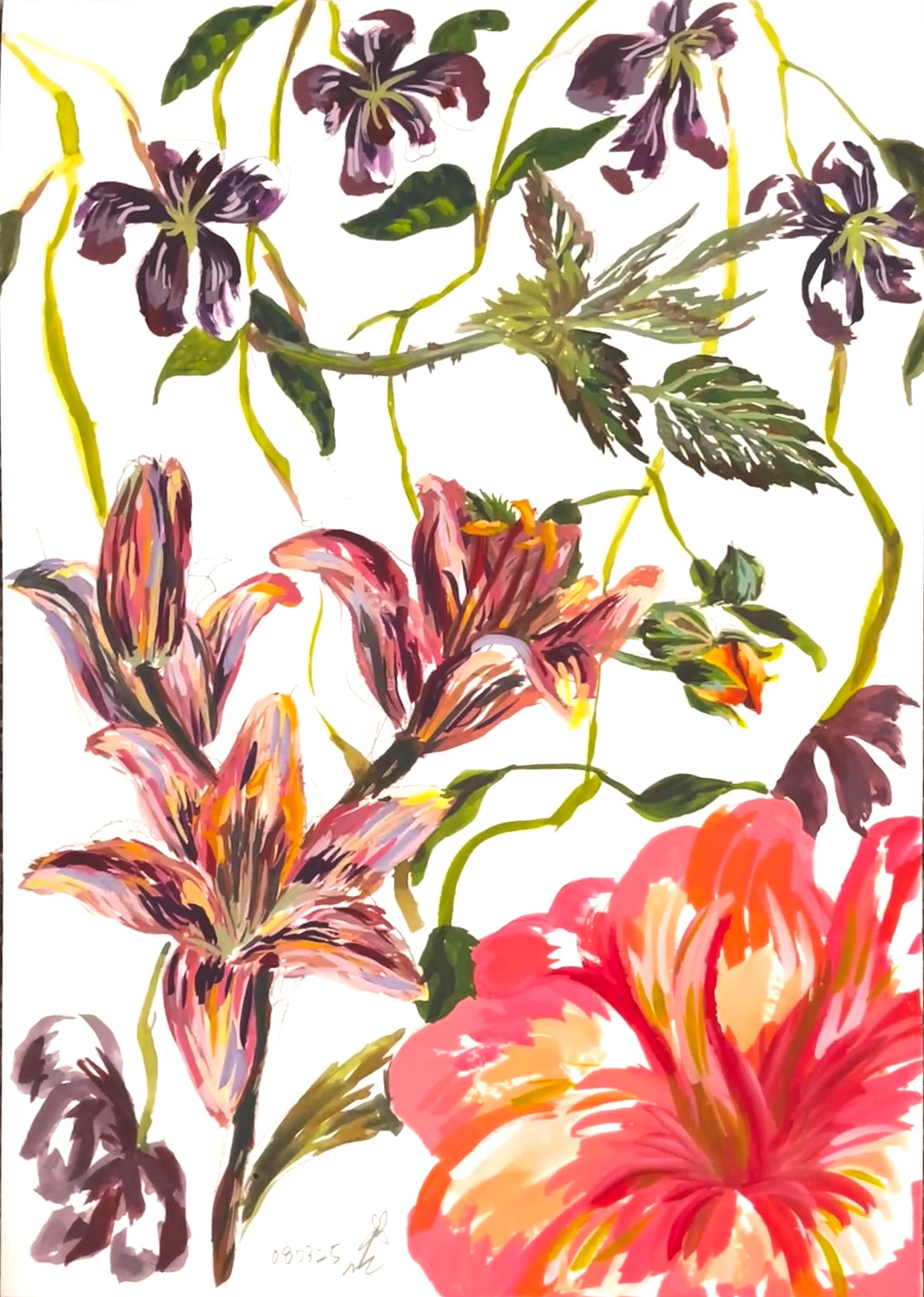 I used gouache to study flowers. The vibrant colours accentuate the energy of the flowers in the summer.