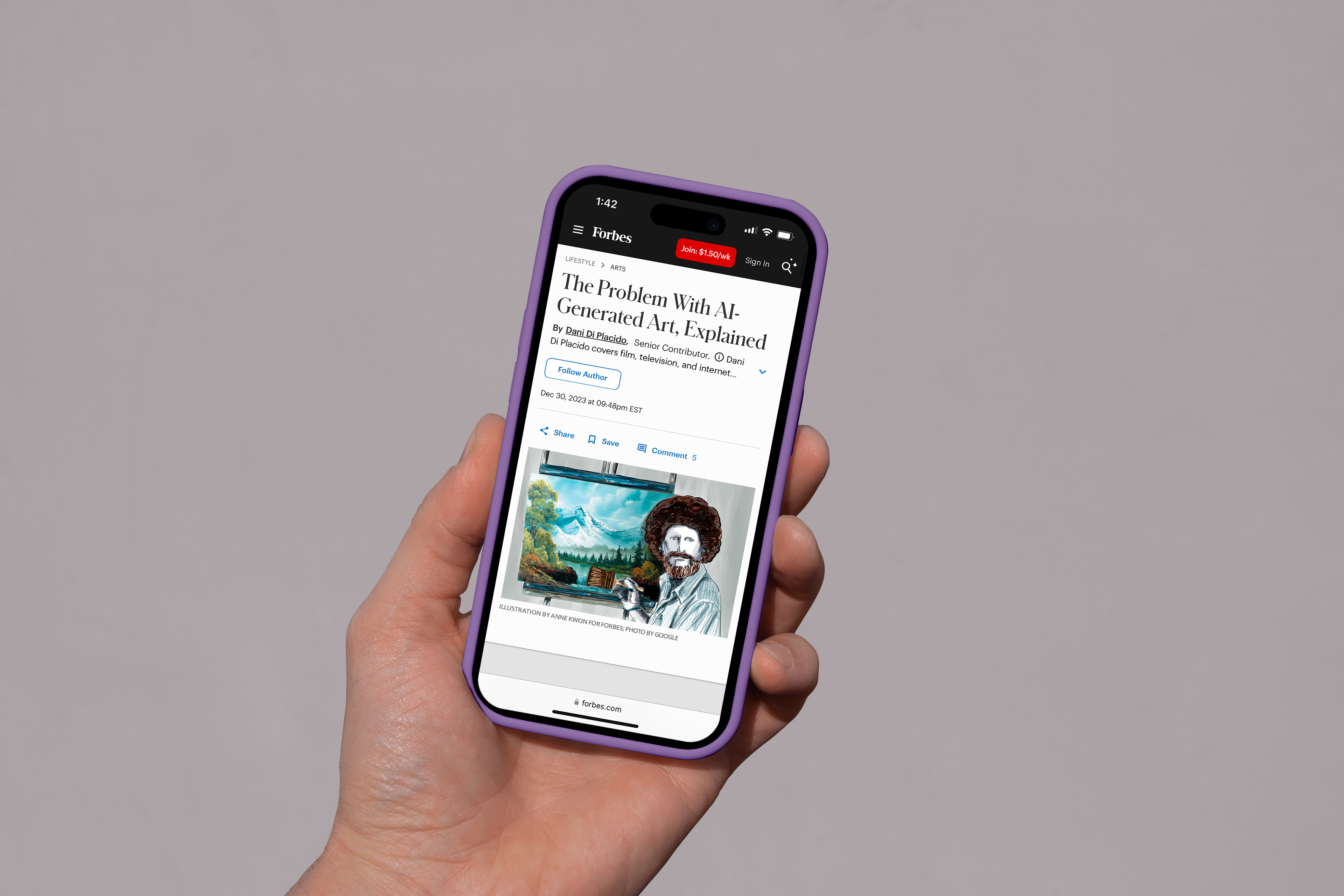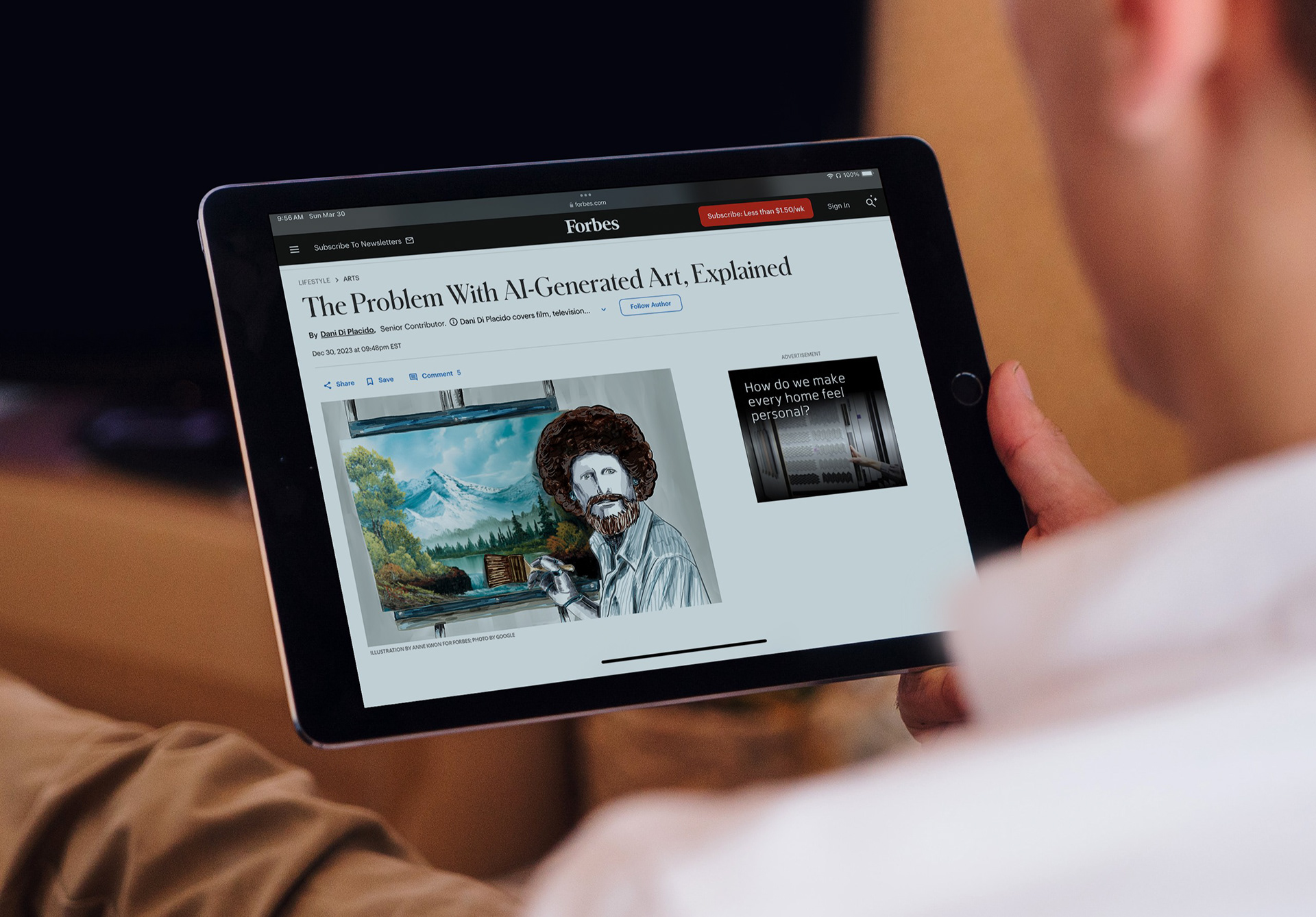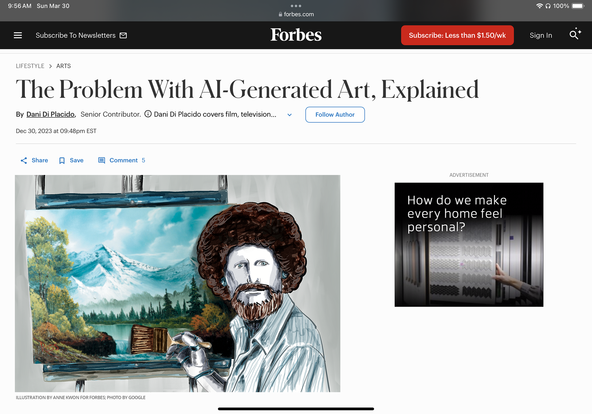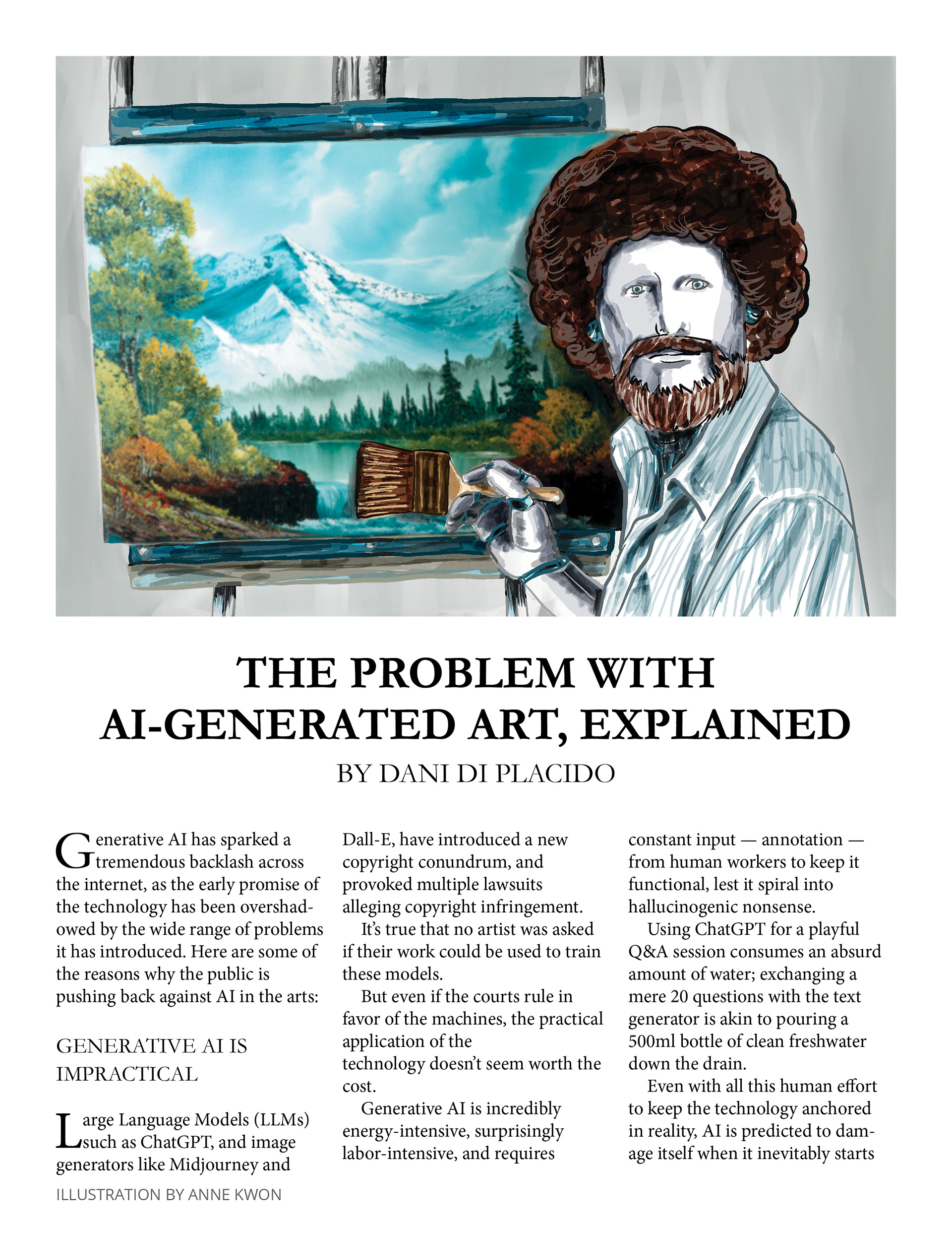 Create an illustration highlighting the article discussing the risk of AI-generated art.